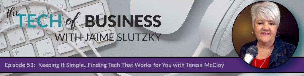 Today’s episode is with Teresa McCloy. She uses tech in several aspects of her business as a coach. There are lots of ways entrepreneurs use tech in their business without even realizing it. I think that there is a misconception as to what is considered technology and what is considered a tool. Once we master using a tool, maybe we don’t consider it technology because it is something that has just become a part of our day or a tool in our toolbox.